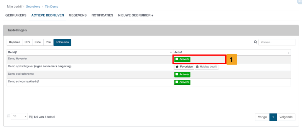 Als Klant Premium-gebruiker kun je eenvoudig tussen verschillende bedrijven wisselen.