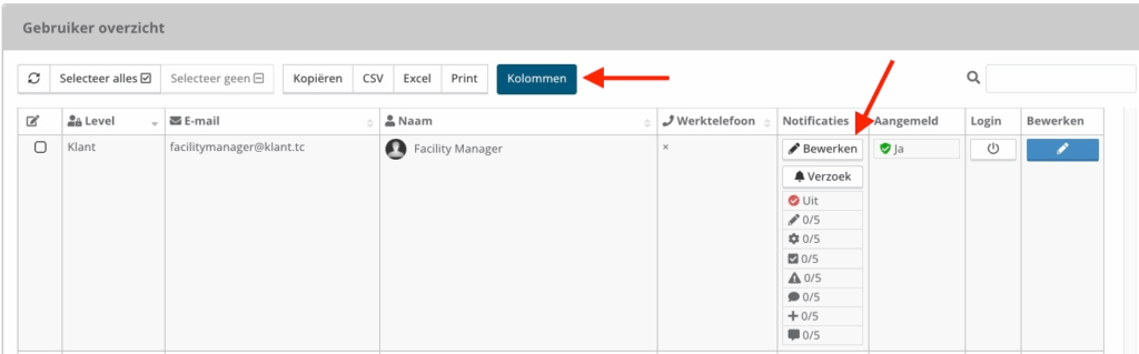 Let op dit kan alleen als je de rol Beheer of Klant hebt.