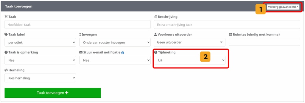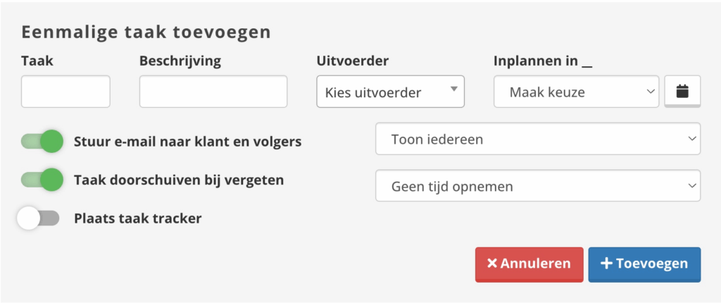 Ben je klaar met invullen? Klik dan op Taak toevoegen + om de taak op te slaan.