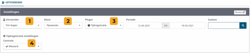 Bij ‘Uitvoerder’ kiest u de uitvoerder waarvan u het overzicht wilt maken. U kunt hier ook ‘Alle‘ kiezen.