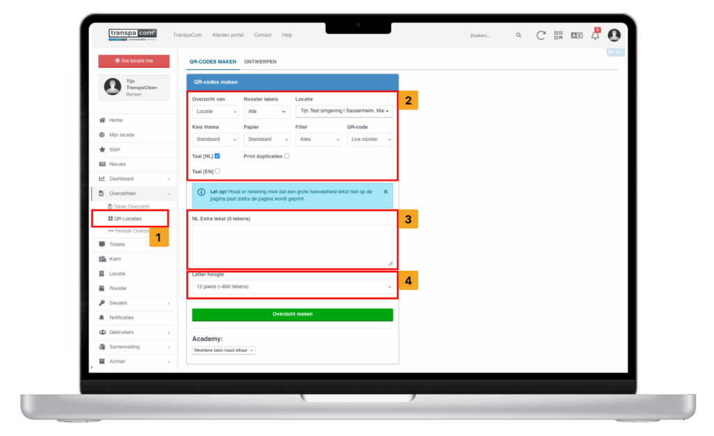Ga hiervoor naar ‘Overzichten‘ en ‘QR locaties‘. Let op dat je instelling ‘QR-code’ op ‘Auto login url‘ zet.