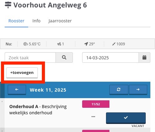 Klik vervolgens op onderstaande knop ‘toevoegen‘ (bovenaan de takenlijst).