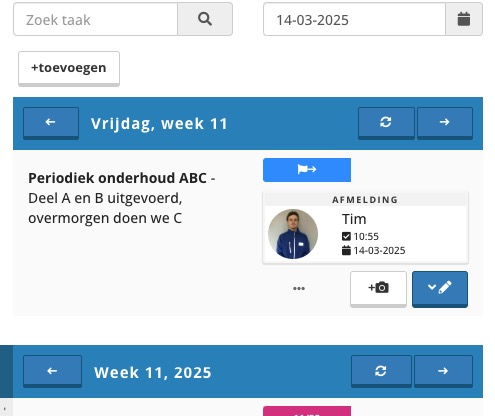 Met de optie ’toevoegen’ kun je dit extra uitgevoerde werk vastleggen. Zo weet iedereen waar je mee bezig bent geweest en hoeven hier geen onnodige discussies over ontstaan. Ook kun je een eenmalige taak gebruiken om ‘extra informatie’ over werkzaamheden toe te voegen, bijvoorbeeld wanneer bepaalde werkzaamheden nog niet volledig zijn afgerond of vertraagd.