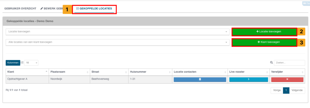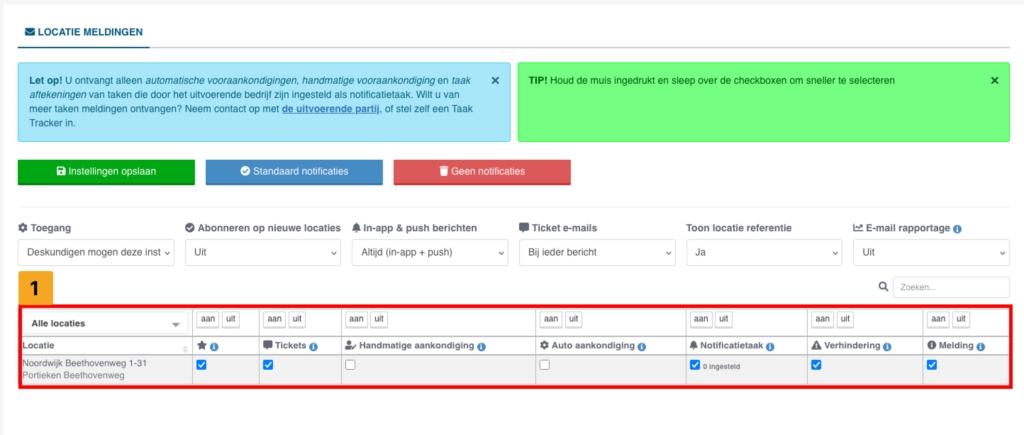 Met deze instelling houdt u rekening met klant en/of contactpersonen die zich hebben aangemeld voor notificatietaken, én ook gebouwgebruikers (Bijvoorbeeld bewoners) die zich hebben aangemeld als locatievolger (Zie stap 3).