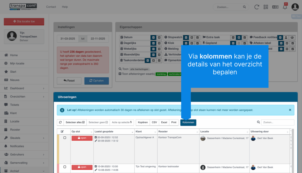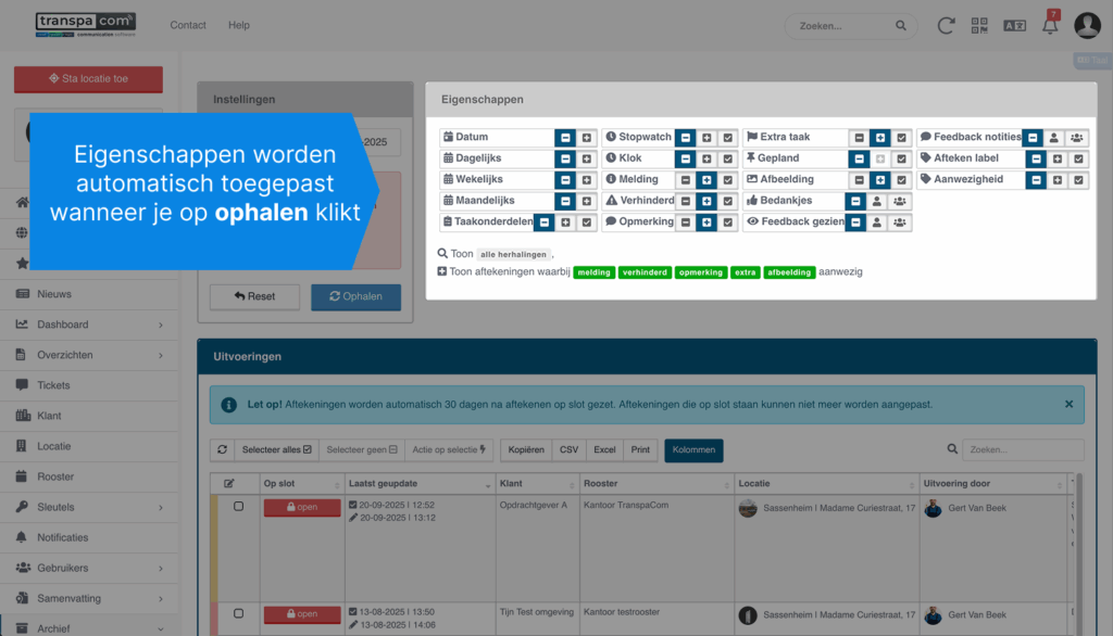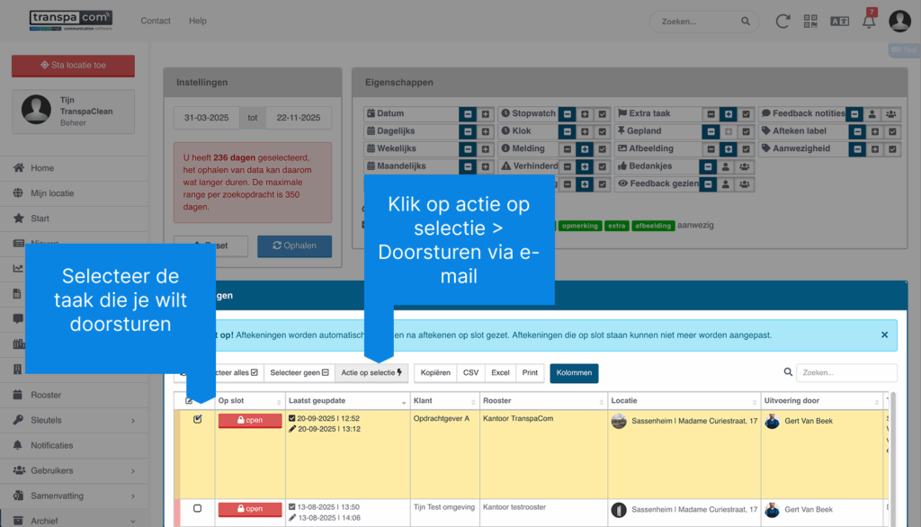 Soms wil je een lopende taak stopzetten, maar wel het verleden en de aftekeningen bewaren. In TranspaClean kan dit eenvoudig. Je hebt daarbij twee mogelijkheden: de taak stoppen vanaf de eerstvolgende week/maand, of de taak stoppen op een specifieke datum. In dit artikel lees je stap voor stap hoe je dit doet.