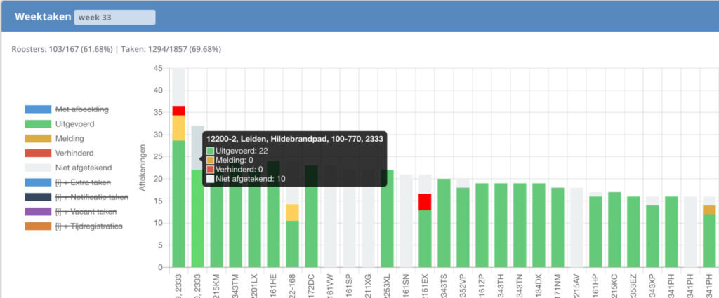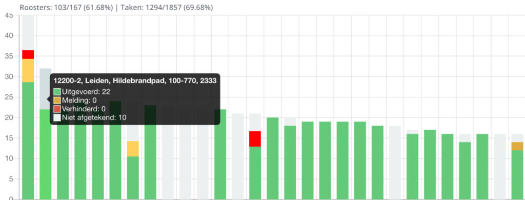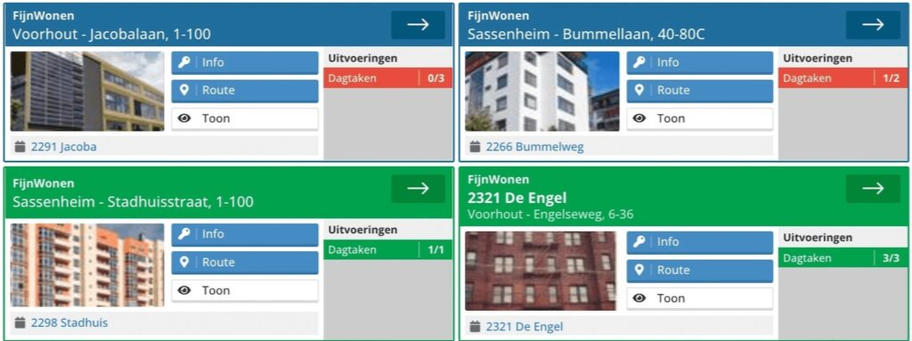 Nu krijg je een overzicht van alle locaties en kun je gemakkelijk zien waar taken wel (en niet) zijn uitgevoerd, en als er bijzonderheden zijn geregistreerd.