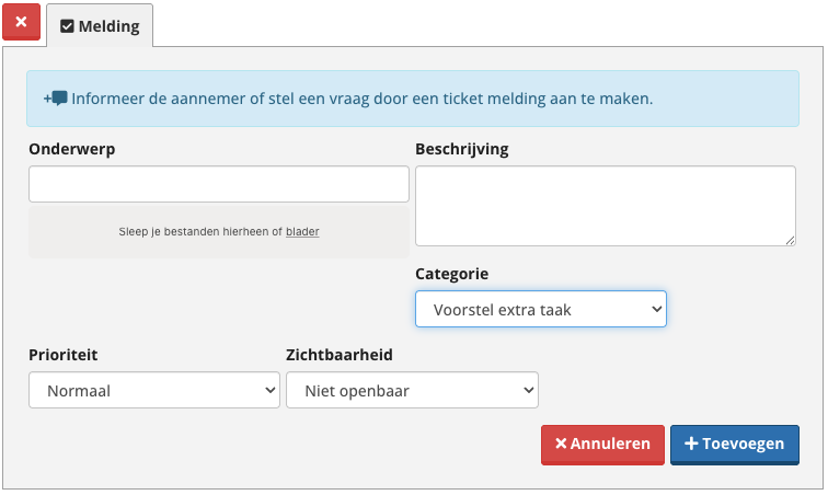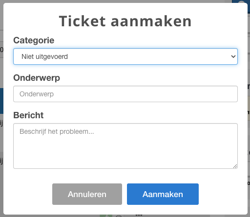 Zie hieronder hoe het scherm ‘Ticket aanmaken’ eruitziet: